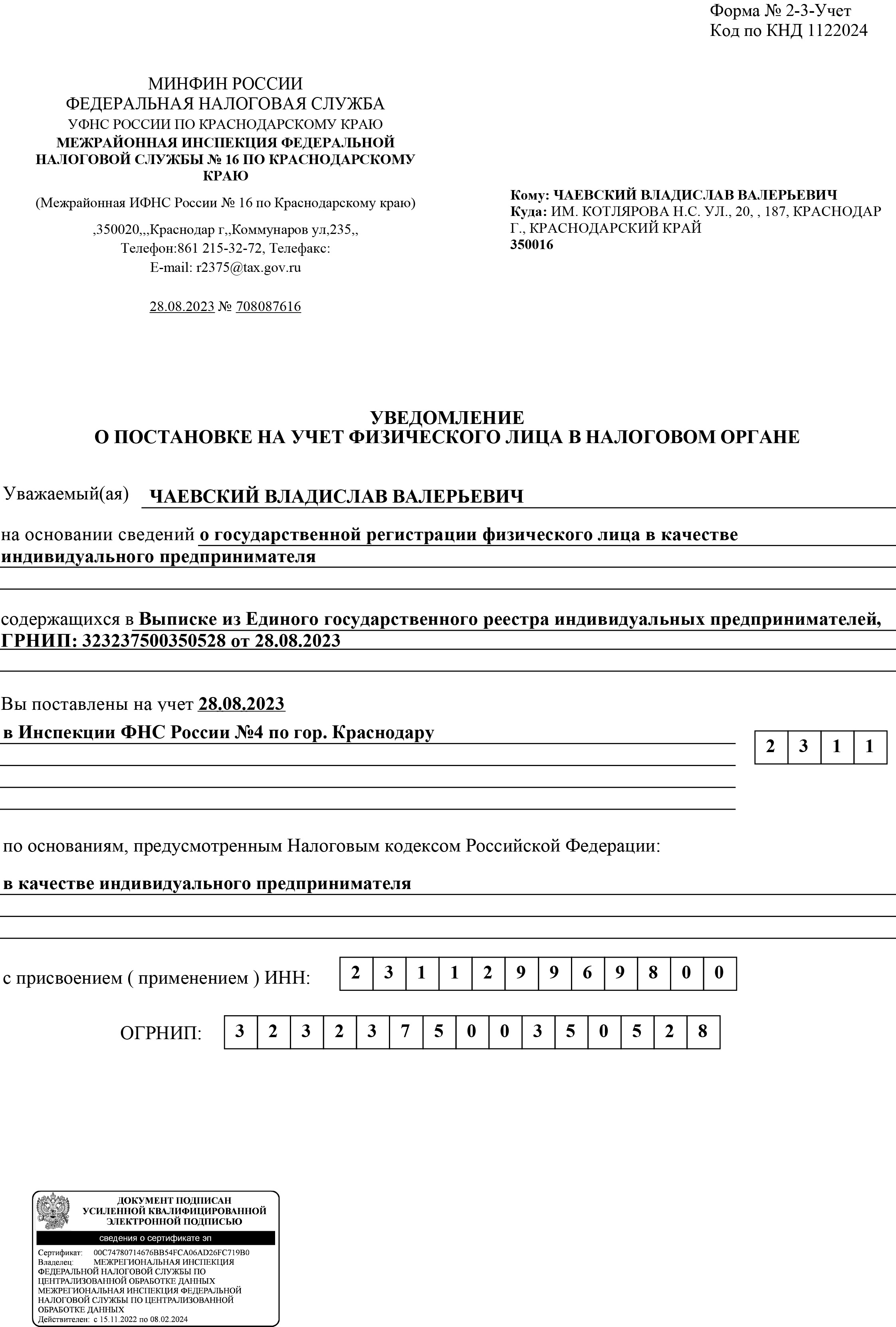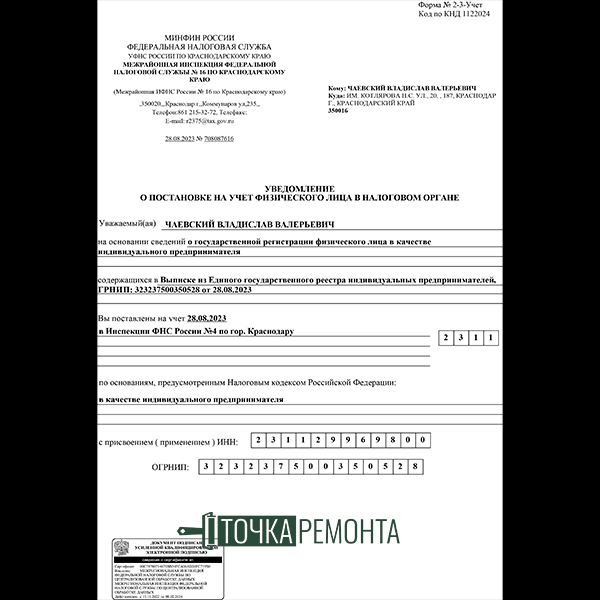 ИНН: 231129969800