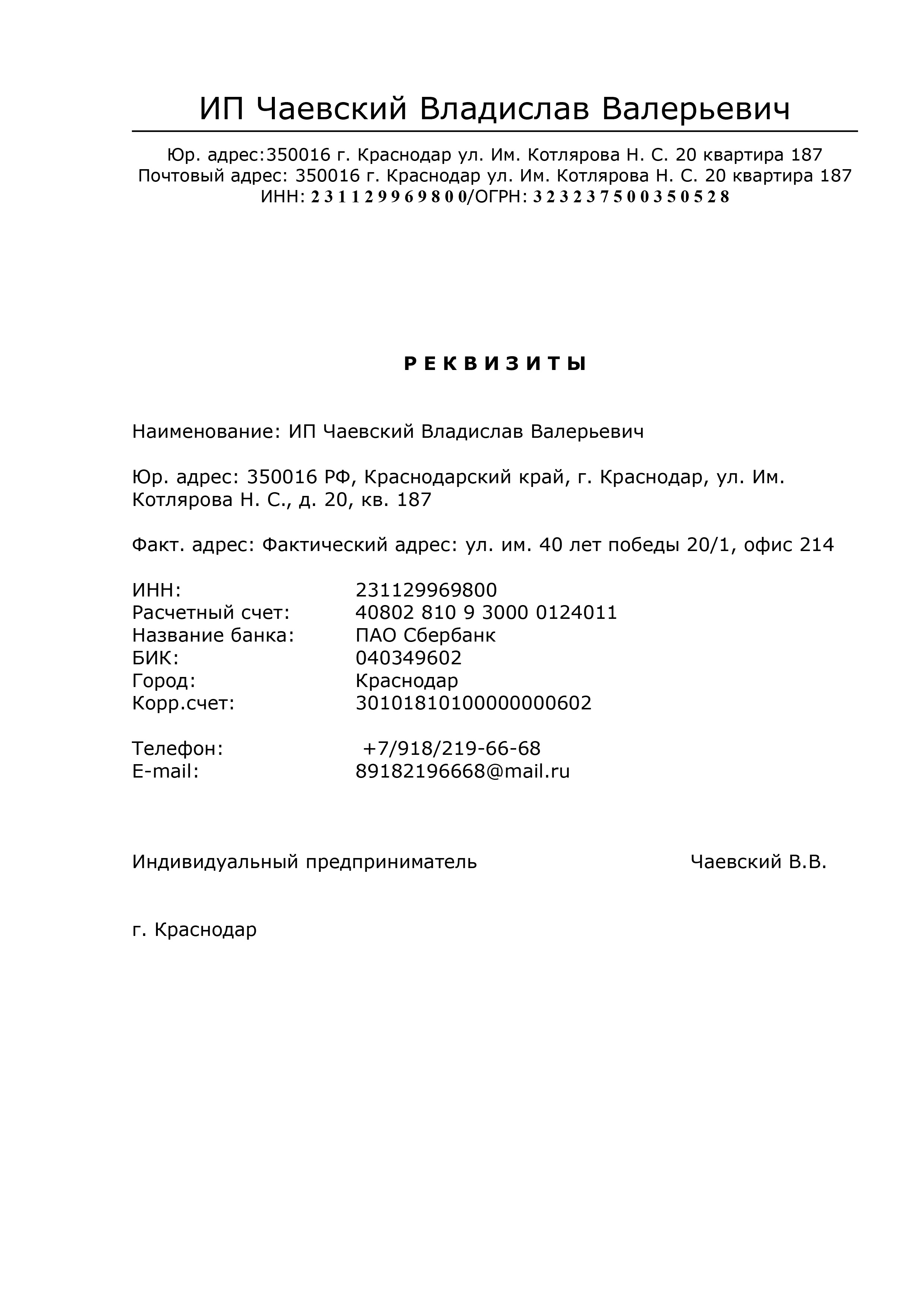 ИП Чаевский Владислав Валерьевич